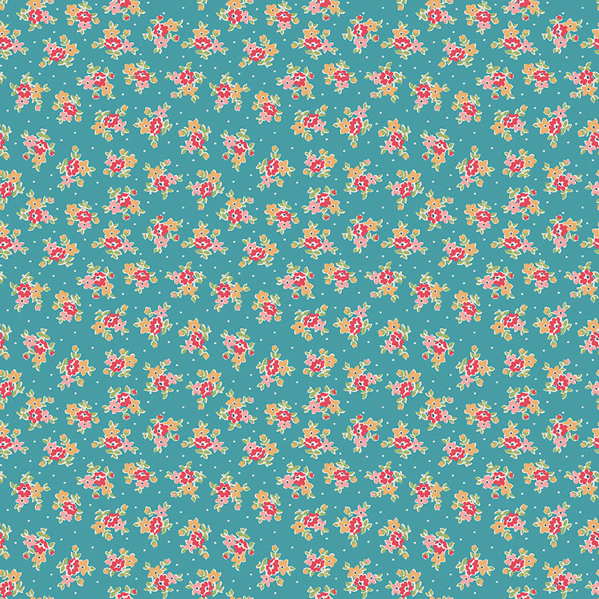 Fabric: This print features scattered bouquets and pin dots.