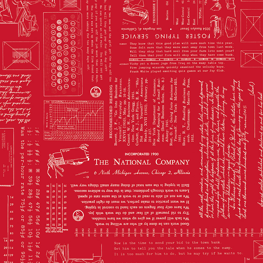 Fabric:  This print features vintage typing-themed text and images.